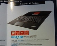 ThinkPad首款超级本X1 Carbon即将发布,关于这款机器的详细配置我们已经了解很多,但是价格却一直没有曝光。日前,网络上曝光的类似于销售宣传彩页的图片显示了港版ThinkPad X1 Carbon的详尽配置和售价信息。曝光图显示,ThinkPad X1 Carbon在参考价为12880港币,实际成交价为9180元,约合人民币7744元