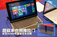 10月15日下午英特尔全新超极本品鲜会上,我们看到了一款东芝生产的变形超极本,采用“推拉门”的设计,推上以后即变身为平板,拉开则立马变身为超极本,配合即将正式发售的Windows8操作系统,给我们带来了比较流畅的使用体验,除此之外,该款产品还支持NFC刷卡在线消费的功能,表现出过人的安全性。