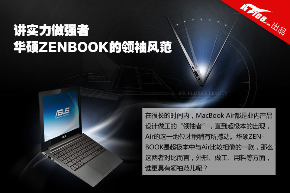 在很长的时间内,MacBook Air都是业内产品设计做工的“领袖者”,直到超极本的出现,Air的这一地位才稍稍有所撼动。华硕ZENBOOK是超极本中与Air比较相像的一款,那么这两者对比而言,外形、做工、用料等方面,谁更具有领袖范儿呢?