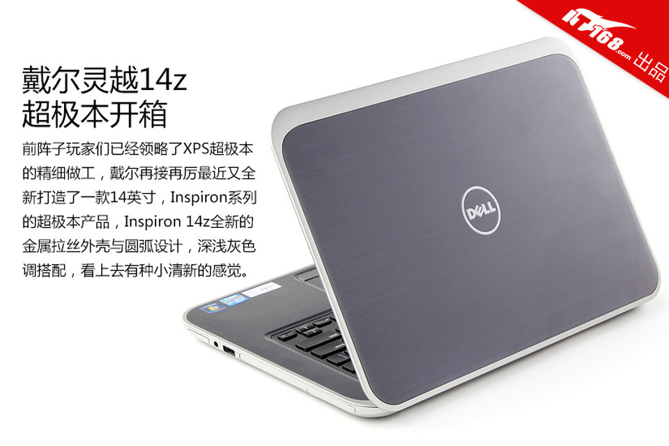 前阵子玩家们已经领略了XPS超极本的精细做工,戴尔再接再厉最近又全新打造了一款14英寸,Inspiron系列的超极本产品,Inspiron 14z全新的金属拉丝外壳与圆弧设计,深浅灰色调搭配,看上去有种小清新的感觉。