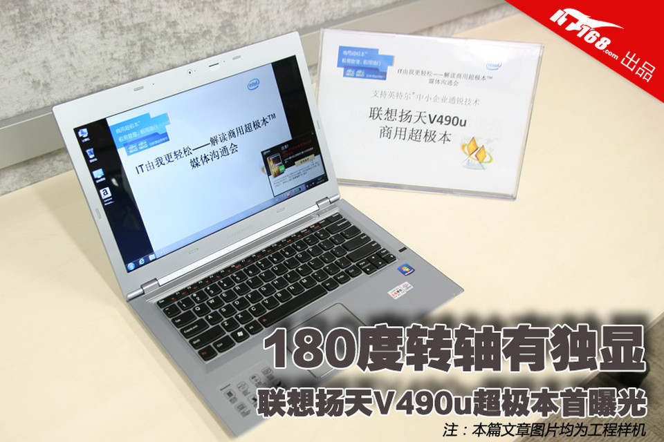 今天我们看到了一款联想商用PC扬天旗下的首款超极本V490u,与普通消费级超极本的不同之上在于,它采用了180度的转轴、免工具可拆卸的后盖、独立显卡、强劲的防滚架设计、还有键盘灯等设计,同时在软件方面搭配英特尔通锐技术,拥有定时开关机等商务特性,是一款定位于中小企业用户的商用超极本