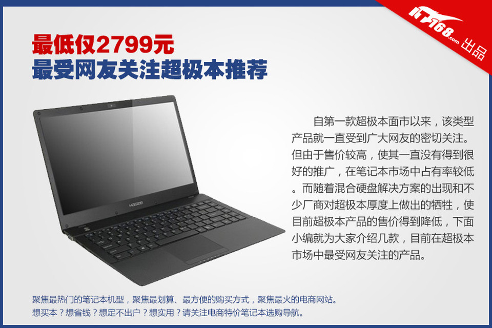自第一款超极本面市以来,该类型产品就一直受到广大网友的密切关注。但由于售价较高,使其一直没有得到很好的推广,在笔记本市场中占有率较低。而随着混合硬盘解决方案的出现和不少厂商对超极本厚度上做出的牺牲,使目前超极本产品的售价得到降低,下面小编就为大家介绍几款,目前在超极本市场中最受网友关注的产品。