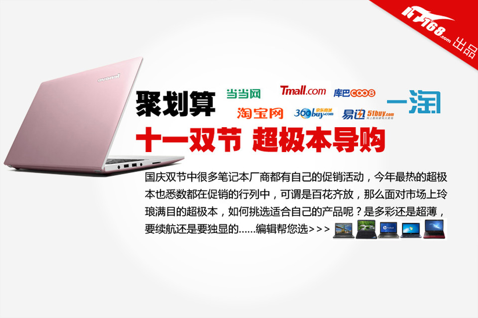 国庆双节中很多笔记本厂商都有自己的促销活动,今年最热的超极本也悉数都在促销的行列中,可谓是百花齐放,那么面对市场上玲琅满目的超极本,如何挑选适合自己的产品呢?是多彩还是超薄,要续航还是要独显的……编辑帮您选>>>