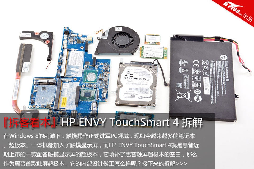 在Windows 8的刺激下,触摸操作正式进军PC领域,现如今越来越多的笔记本、超极本、一体机都加入了触摸显示屏,而HP ENVY TouchSmart 4就是惠普近期上市的一款配备触摸显示屏的超极本,它填补了惠普触屏超极本的空白,那么作为惠普首款触屏超极本,它的内部设计做工怎么样呢?请看接下来的拆解。