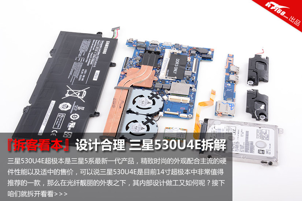 三星530U4E超极本是三星5系最新一代产品,精致时尚的外观配合主流的硬件性能以及适中的售价,可以说三星530U4E是目前14寸超极本中非常值得推荐的一款,那么在光纤靓丽的外表之下,其内部设计做工又如何呢?接下咱们就拆开看看