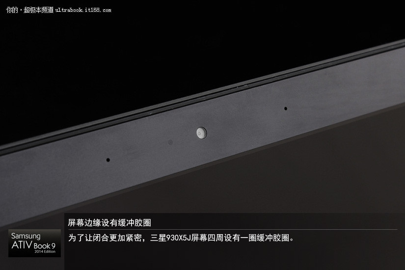 为了让闭合更加紧密,三星930X5J屏幕四周设有一圈缓冲胶圈。